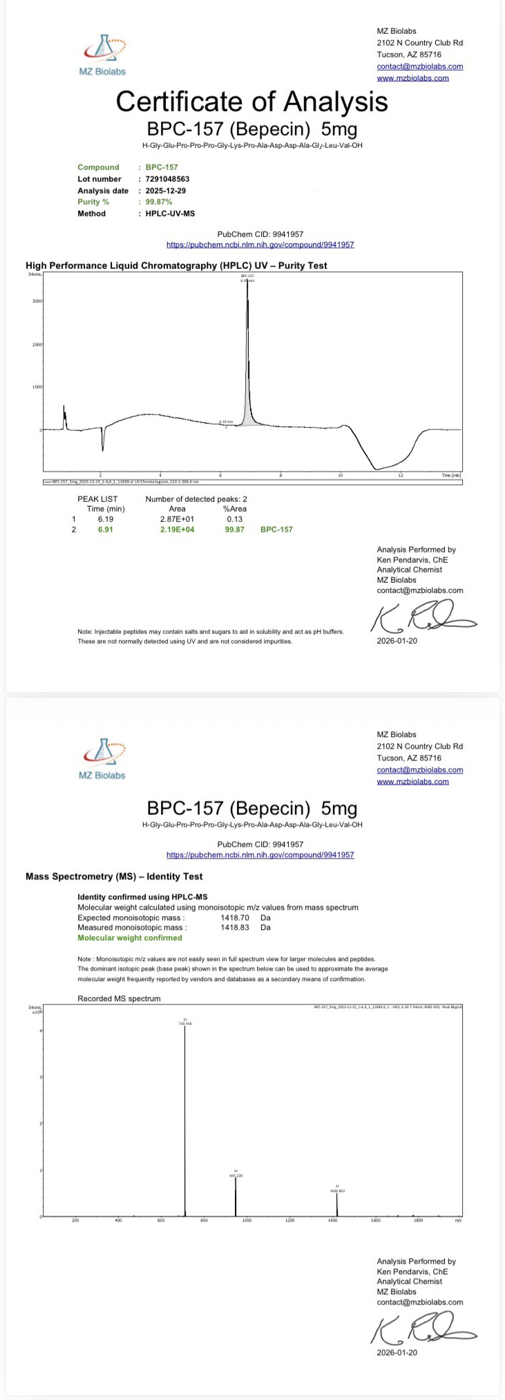 BPC-157 peptide MS identity testBPC-157 peptide analysis report