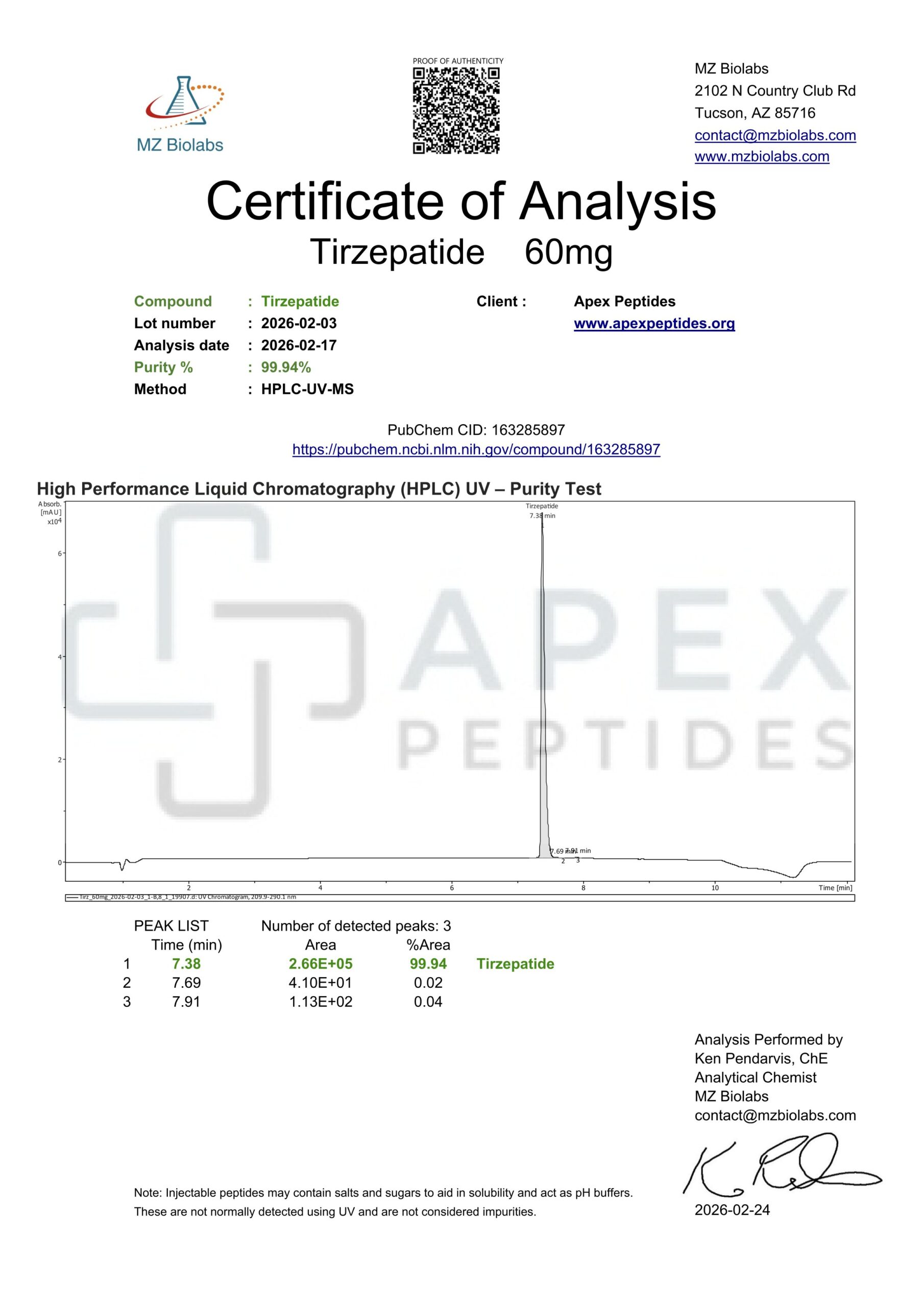 Apex Peptides is a US-based company specializing in 99%+ purity peptides for research use. We pride ourselves on our unwavering commitment to transparency and trust. Each peptide vial you purchase from us is linked to its batch’s Certificates of Analysis (COA) from independent third-party laboratories. These reports detail the results of the peptide you are holding in your hand, ensuring you have complete confidence in the purity and quality of the research peptides you receive. Our mission is your success in research.