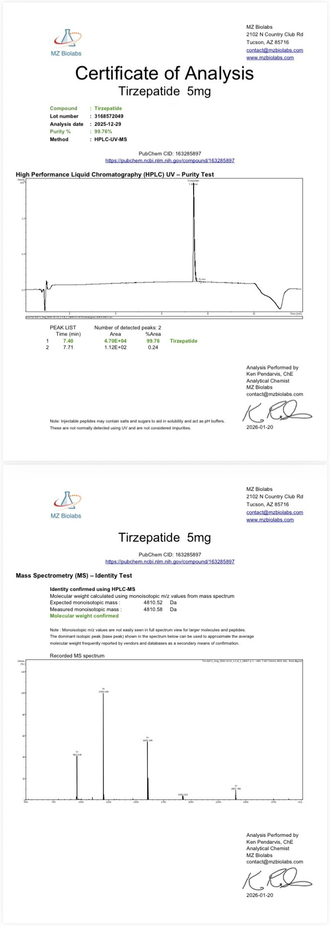 Our GLP-T is produced in certified facilities and tested using High-Performance Liquid Chromatography (HPLC) to ensure ≥99% purity. Each batch is supplied in lyophilized powder form to maintain integrity during storage and allow accurate measurement in experimental applications.
