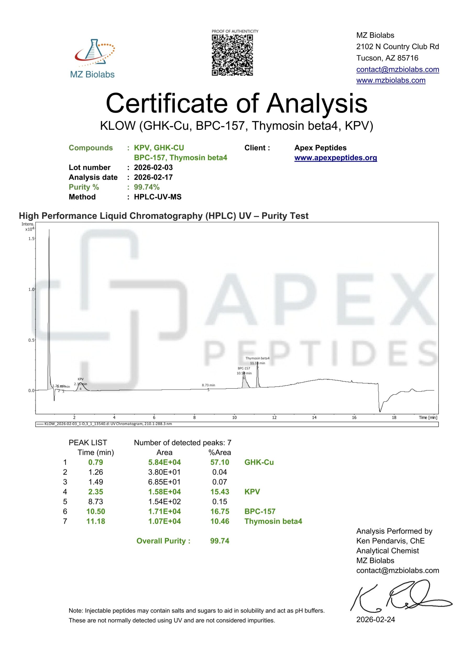 Apex Peptides is a US-based company specializing in 99%+ purity peptides for research use. We pride ourselves on our unwavering commitment to transparency and trust. Each peptide vial you purchase from us is linked to its batch’s Certificates of Analysis (COA) from independent third-party laboratories. These reports detail the results of the peptide you are holding in your hand, ensuring you have complete confidence in the purity and quality of the research peptides you receive. Our mission is your success in research.