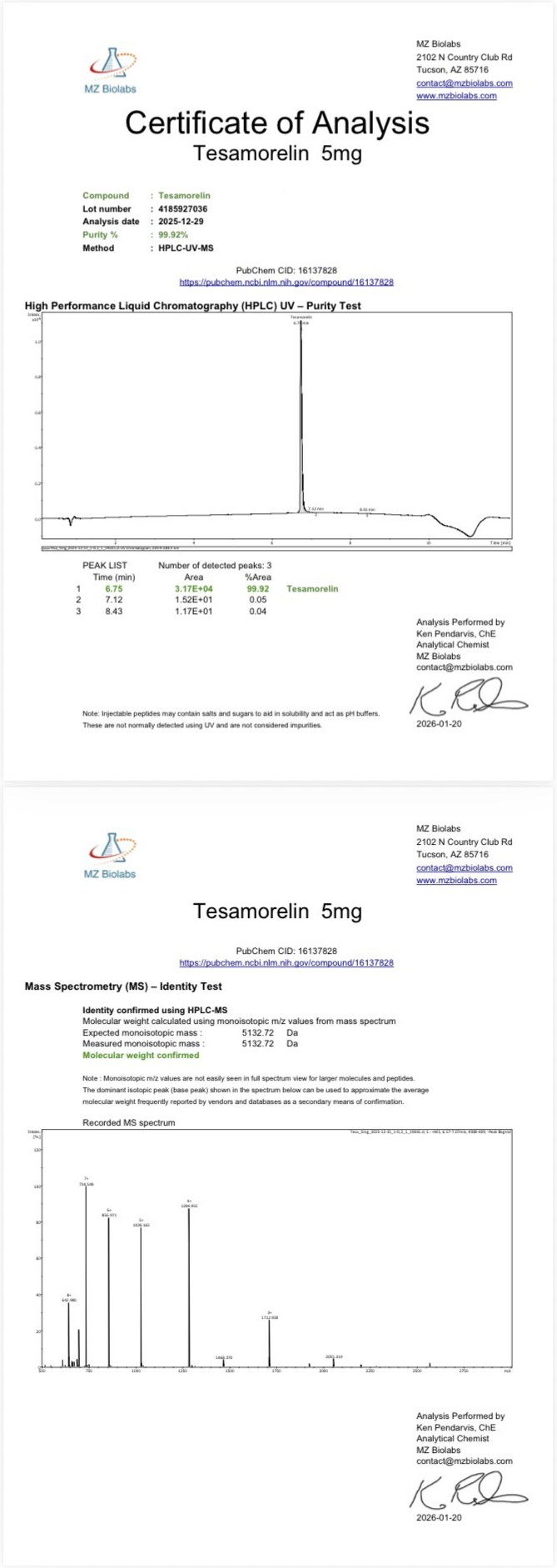 This Tesamorelin is produced to 99% purity (HPLC tested) and stored under optimal conditions to preserve stability for research use. It is supplied in lyophilized powder form, suitable for accurate measurement in experimental applications.
